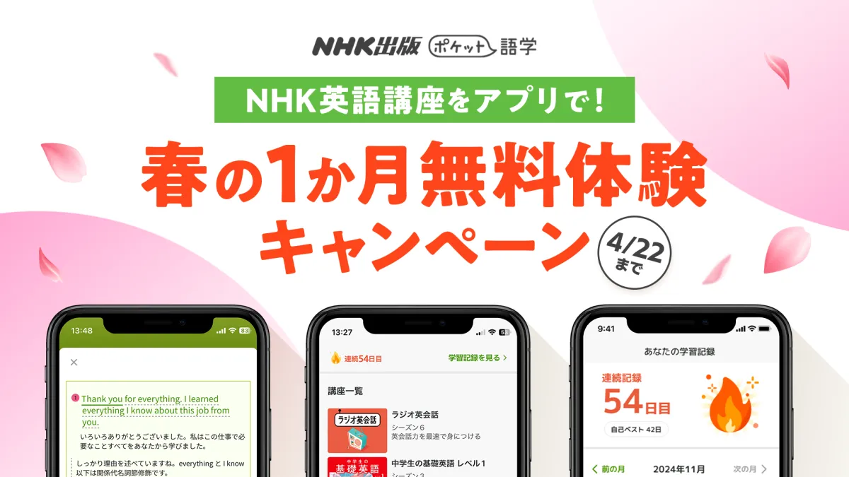 NHK英語講座アプリ「ポケット語学」が春の1か月無料体験を開始!