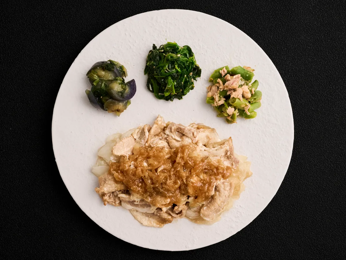 今回のメニューの主役は、宮崎県産の豚ロース。この地域で育つ豚は、温暖な気候と豊かな自然環境に恵まれ、柔らかく凝縮した旨みが特徴です。特製の生姜だれに千切りの生姜を加えることで、香り高く味わい深い一品に仕上げられています。たっぷり絡む生姜だれは、肉との相性も抜群。厚みのあるお肉は食べ応えもあり、リモートワークで忙しい方のための時短料理としても最適です。