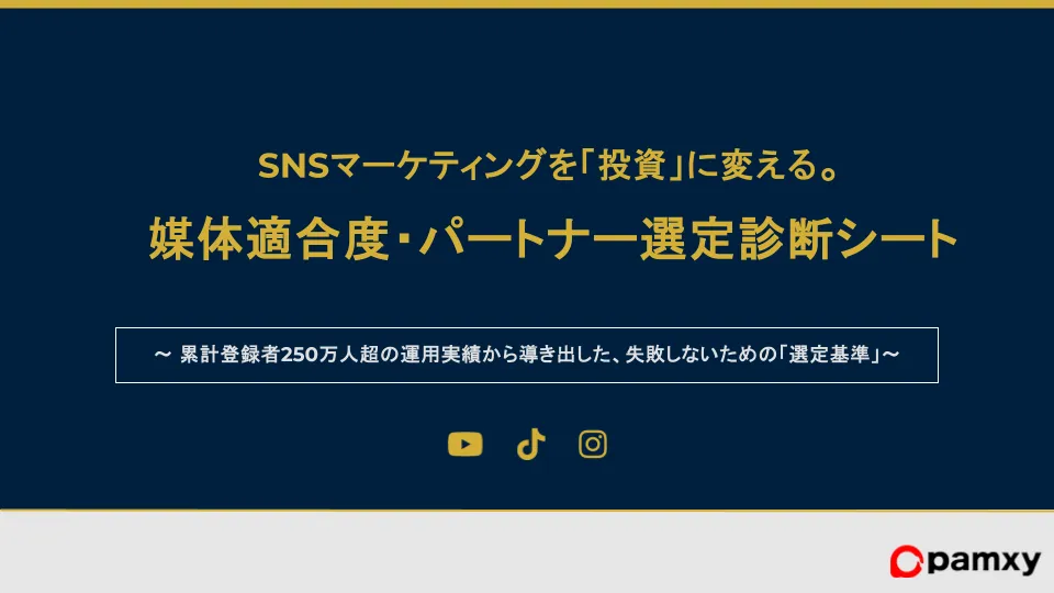 pamxyは、これに応える形で『SNS媒体適合度・選定診断シート』を作成しました。この資料では、SNS運用を「作業」として捉えるのではなく、「投資」としての意義を強調し、効果的な戦略構築をサポートします。