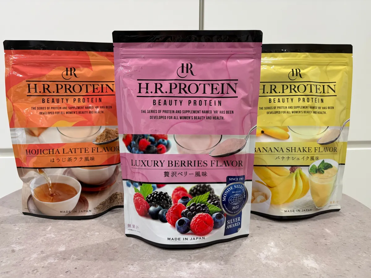「H.R.プロテイン」は、体づくりをサポートするために開発されたプロテインです。特に、「プロテインが苦手」といった声に応える形で、飲みやすさに配慮されています。人工甘味料を一切使用せず、植物性と動物性のタンパク質を組み合わせたハイブリッドな配合が特徴。これにより、体内での吸収が早く、効率的な摂取が可能です。またバナナシェイク風味、ほうじ茶ラテ風味、贅沢ベリー風味といった豊富なフレーバーが揃い、ジュース感覚で楽しむことができると評判です。