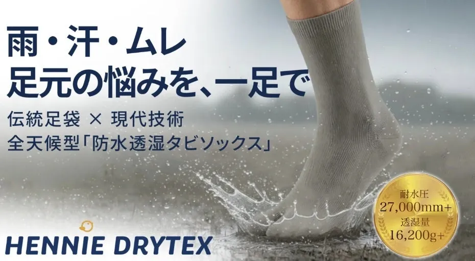 雨の日の外出を快適に変えるHennie Drytexの防水透湿タビソックス。あなたもこの新しい体験を試してみませんか?