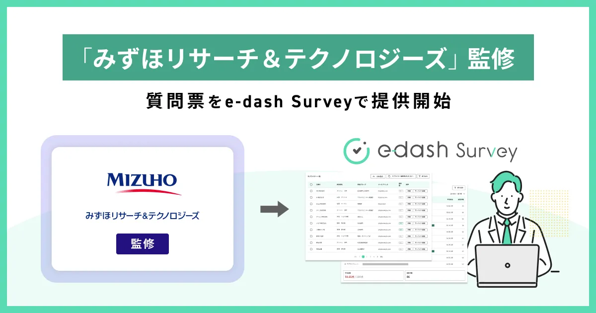 近年、企業は気候変動への対応が強く求められるようになりました。国際的な圧力や規制の強化に伴い、サプライチェーンにおけるGHG排出量の管理が重要になっています。しかし、多くの企業はサプライヤーとの情報共有やデータ収集が十分ではなく、効果的なエンゲージメント手法や質問項目の設定に困難を感じています。そこで、e-dashは東京・千代田区の「みずほリサーチ&テクノロジーズ」監修のもと、専門的な質問票を取り入れた「e-dash Survey」を開始することになりました。