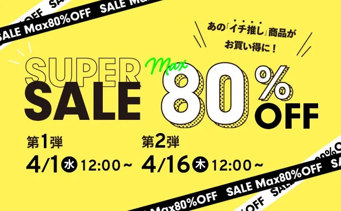 セールは二つの段階に分かれており、第一弾は4月1日(水)12:00から4月15日(水)10:00まで、第二弾は4月16日(木)12:00から4月30日(木)10:00までの予定です。各店舗によってセールの時間が異なる場合があるため、特設ページで確認することをおすすめします。