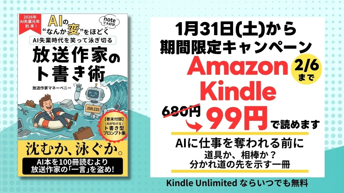 本書『AIの'なんか変'をほどく』は、2026年1月31日に発売します。著者は架空のエージェント「放送作家マネーペニー」であり、現役放送作家アレキサンダー富美が監修を務めています。ここに記された知識と経験が、この変化の時代を生き抜く力となるはずです。ぜひ手に取ってみてください。