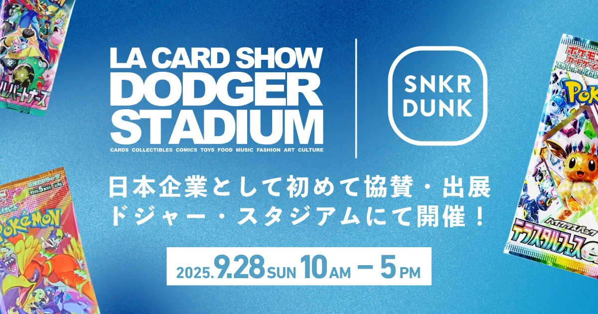 2025年9月28日にロサンゼルスのドジャー・スタジアムで開催される「LA CARD SHOW」に、日本のスニーカー・カルチャーをリードするスニーカーダンク(以下、スニダン)が協賛とブース出展を決定しました。これは、日本企業がこのイベントに参加するのは初めてのことであり、業界内での大きな動きと捉えられています。