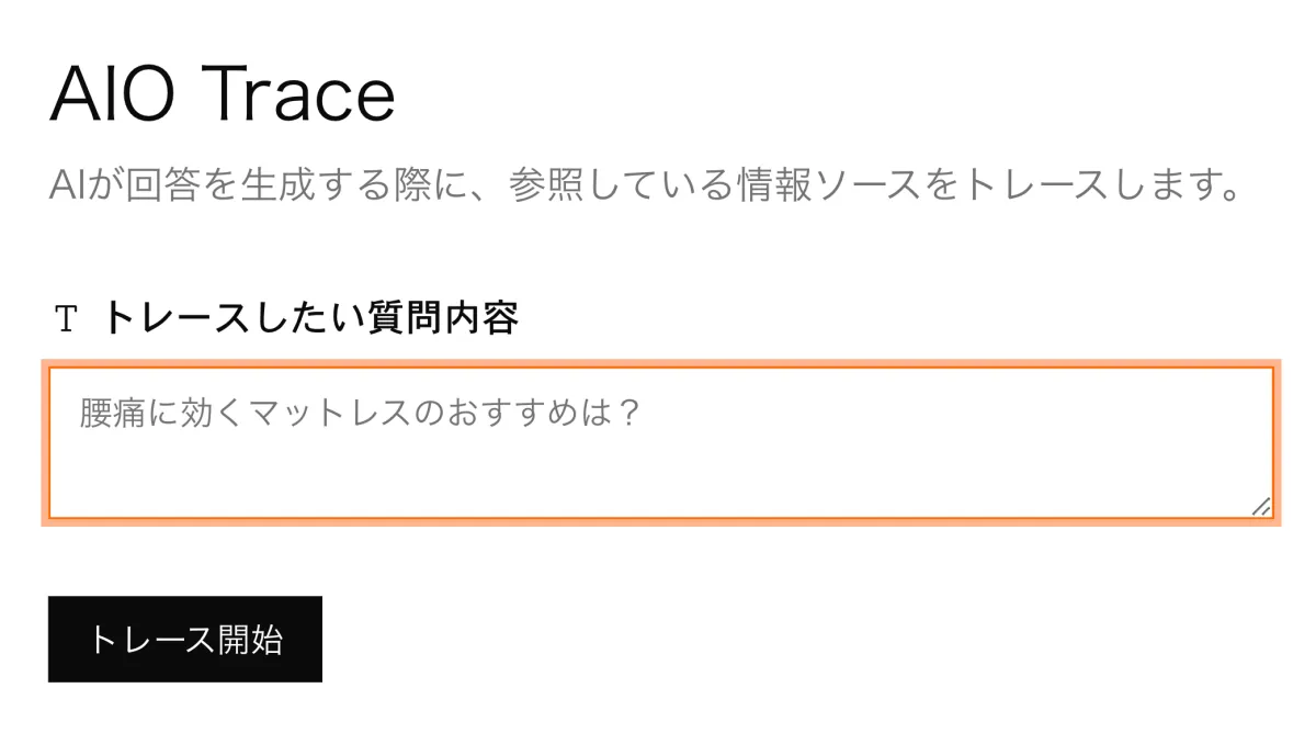 簡単な操作: ユーザーは単に調べたい質問を入力するだけで、AIプロバイダの検索行動をすぐにトレースできます。技術的な知識は不要です。