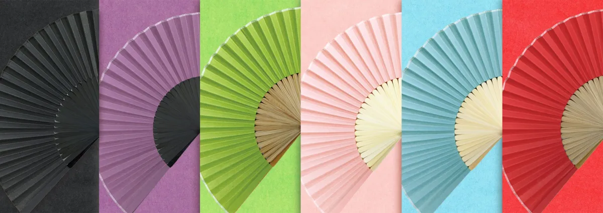 新しい扇子には、心に馴染む落ち着いた色彩、6色が展開されます。具体的には:
