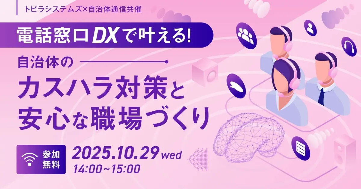 2025年10月29日(水)に、トビラシステムズと自治体通信が共催するオンラインセミナーが開催されます。このセミナーは、「電話窓口DXで叶える!自治体のカスハラ対策と安心な職場づくり」をテーマに、自治体職員を対象にした内容です。近年、自治体職員に対するカスハラが深刻な問題となっていますが、今回のセミナーではその解決策について詳しく探ります。