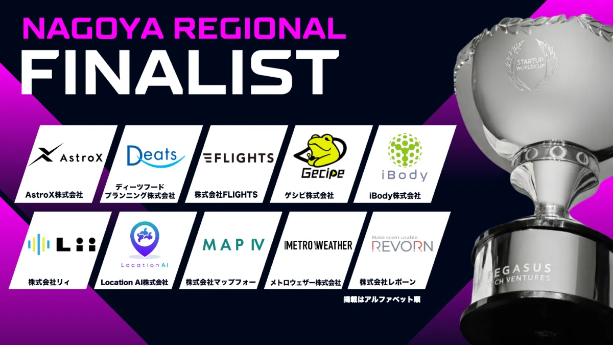 この中から名古屋予選代表企業が1社選出され、11月にはサンフランシスコで行われる世界決勝大会への出場権を獲得します。名古屋から世界へ羽ばたくスタートアップの挑戦を、ぜひお見逃しなく!