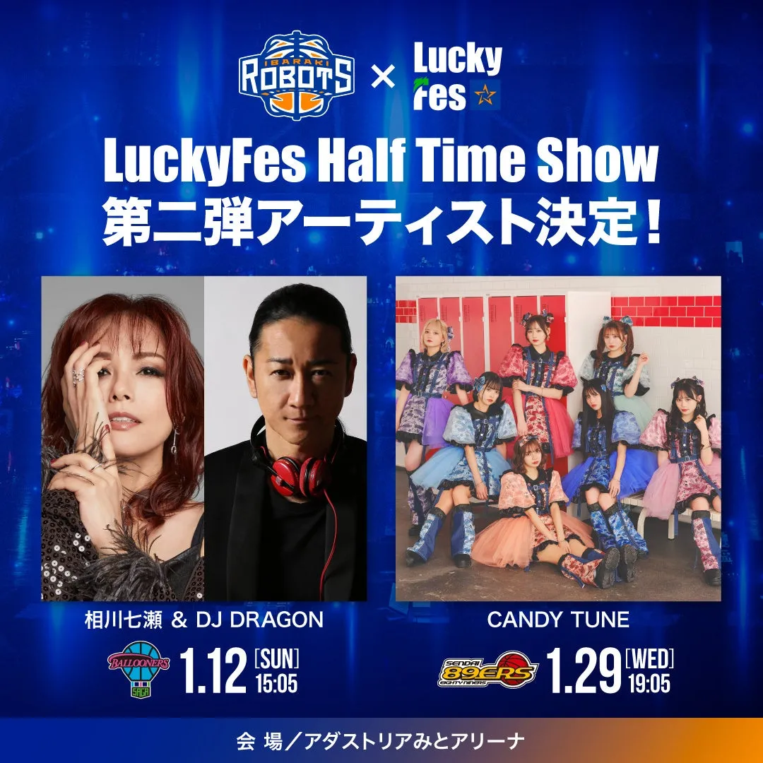 さらに、「LuckyFes Half Time Show」には、1月29日(水)に登場する7人組アイドルグループCANDY TUNEも注目です。彼女たちは原宿を拠点にするグループで、グループ名には、それぞれが持つ個性豊かな魅力が込められています。彼女たちのポップなメロディーがどのように会場を盛り上げるのか、観客の心を掴むこと間違いなしです。CANDY TUNEのパフォーマンスも、同じくアダストリアみとアリーナで夕方19:05からの試合のハーフタイムに実施される予定です。