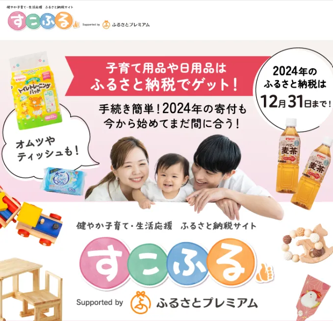 「すこふる」では、特に子育て世帯向けの豊富な返礼品を取り揃えています。育児用品や食品、教育関連サービス、さらには家族向け体験プランなど、様々な選択肢が用意されており、利用者のニーズに応える内容となっています。