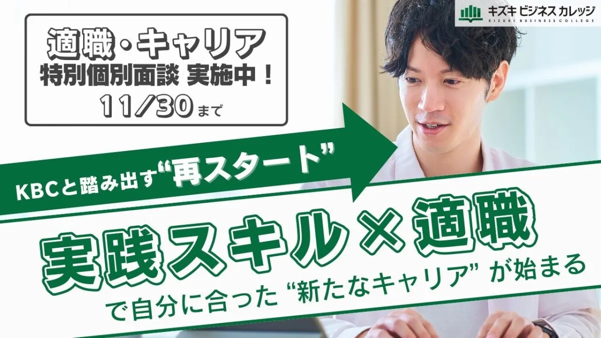 仕事や働き方に悩みを抱えている方に朗報です。就労移行支援事業所「キズキビジネスカレッジ(KBC)」が、2025年11月30日まで、無料のオンライン適職&キャリアカウンセリングを実施しています。この機会に、ぜひ利用してください。