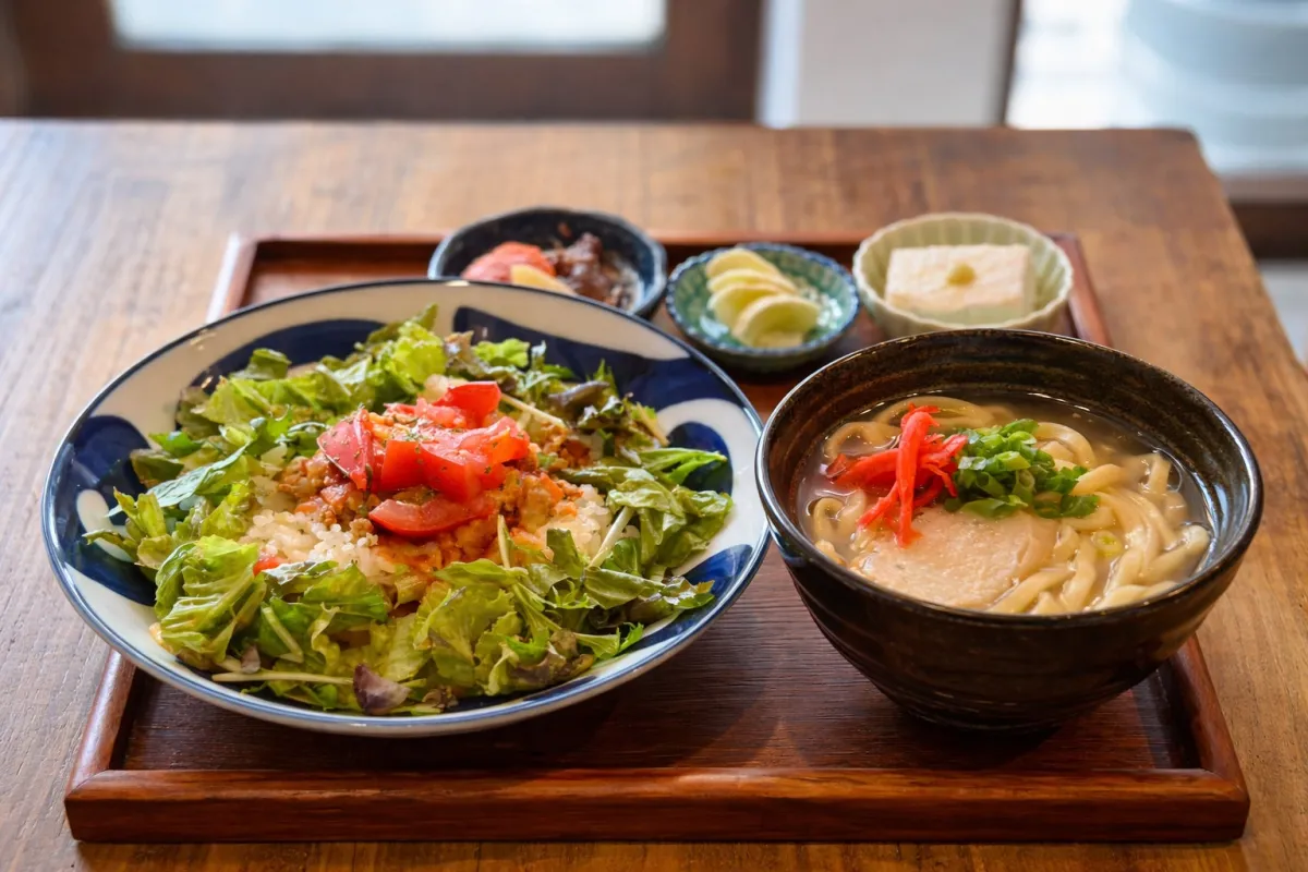 『はりくやまく』では、沖縄の人気料理を集合させたランチメニューを用意しています。タコライス、沖縄そば、ジューシー、ゴーヤーちゃんぷるなど、多彩なメニューから選ぶことができます。身体にも優しい沖縄の家庭料理を一度に味わえるチャンスです。