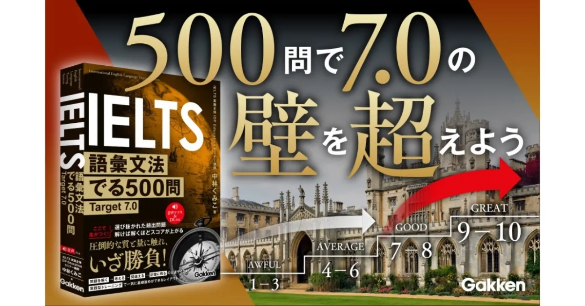 2025年4月28日、株式会社Gakkenから新しい英語学習書が発売されます。それは、IELTS(アイエルツ)を受験する人々のために特化した『IELTS語彙文法でる500問Target7.0』です。この書籍は、GakkenのIELTSシリーズの3冊目となり、英語の語彙と文法を中心に問題を解くことができる教材となっています。