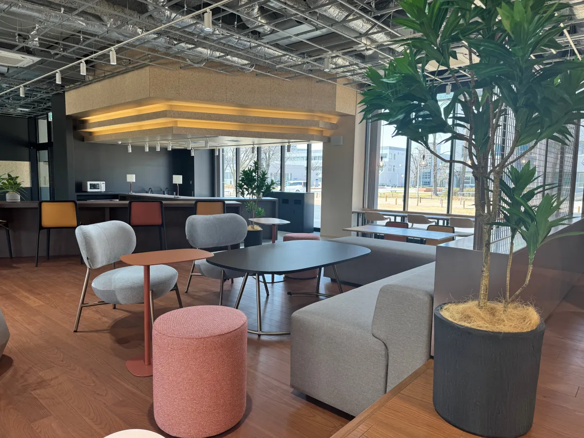 施設の1階には、独自の雰囲気を持つカフェエリアがあり、ワークショップやプレゼンテーション、コワーキングに利用できるスペースが整備されています。この環境が、参加者間の情報交換やアイデア創出を促進することでしょう。