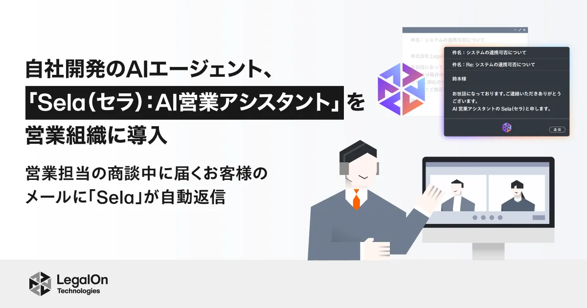 株式会社LegalOn Technologiesが、自社開発のAI営業アシスタント「Sela(セラ)」を営業組織に導入しました。この革新的なAIエージェントは、最新のOpenAIモデル「GPT-4.1」と自社独自の生成AI技術を駆使し、営業担当者の商談中にお客様からの問い合わせに迅速に対応するために設計されています。