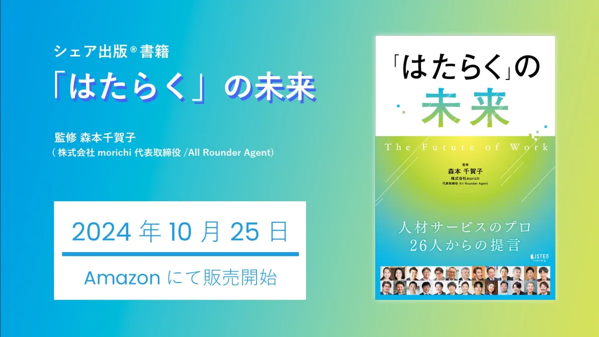 このたび、リスナーズ株式会社が出版した『「はたらく」の未来』は、この課題に取り組むための貴重な指南書です。経営者や業界のプロフェッショナルたちにインタビューを実施し、26社の専門家から多様な「働き」の未来を提言してもらいました。監修は人材戦略コンサルタントとして著名な株式会社morichの森本千賀子氏です。