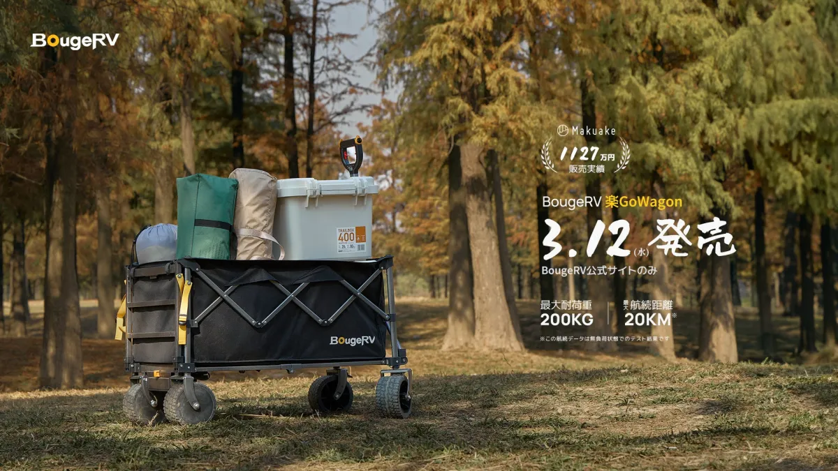アウトドア生活を支える新たなアイテム、\(BougeRV 楽GoWagon\)が2024年3月12日より、公式サイトにて正式販売を開始します。これまでのキャリーワゴンの常識を覆す「BougeRV 楽GoWagon」は、電動で動くことにより荷物の運搬を格段に楽にすることができる革新的な製品です。