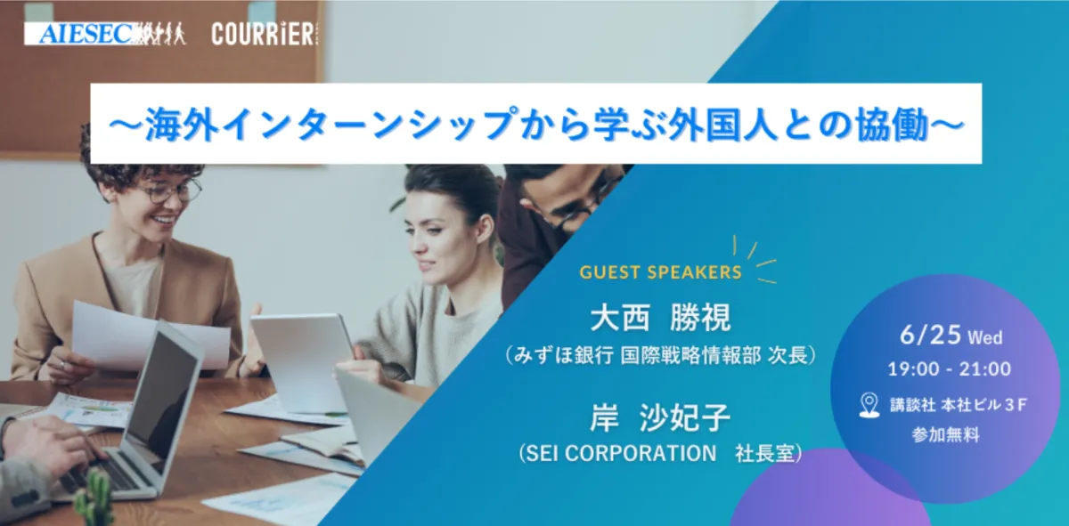 2025年6月25日、私たちアイセックが主催する「海外インターンシップから学ぶ外国人との協働」というイベントが開催されます。このハイブリッド形式のイベントは、対面参加とオンライン参加の両方が可能で、多くの方々に貴重な情報を提供する機会です。