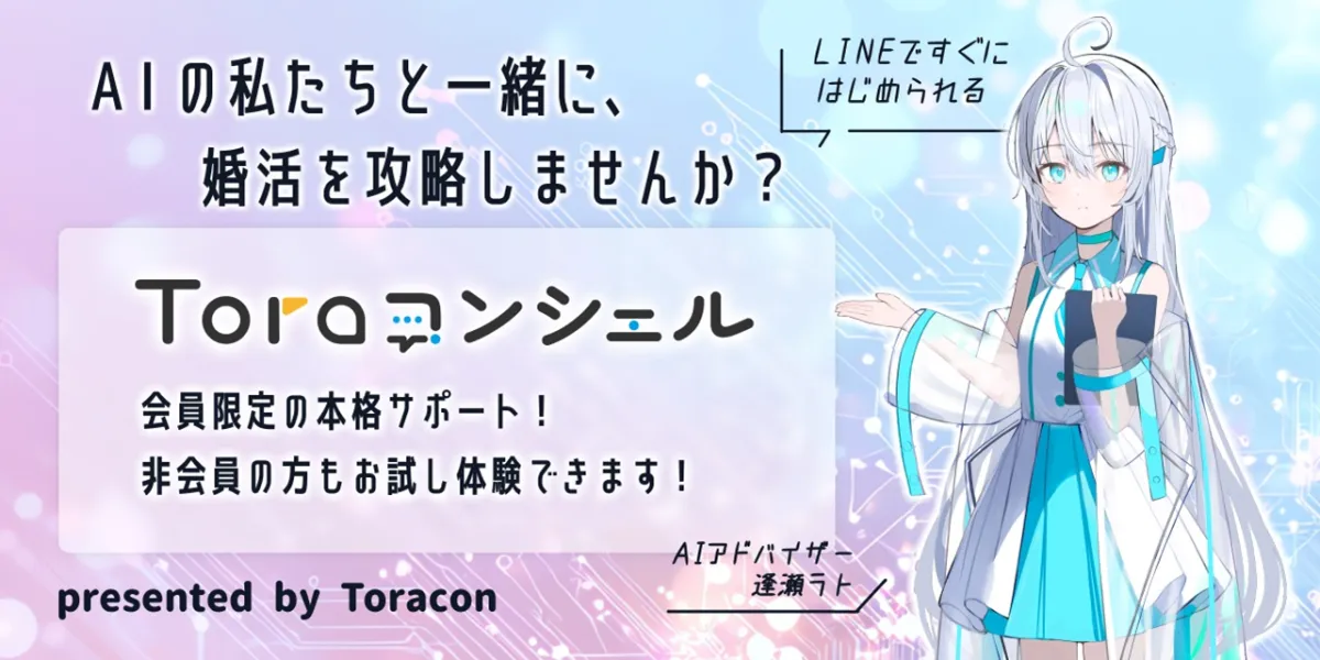 「Toraコンシェル」は、LINEを介して24時間365日利用できるAIアドバイザーによるサービスで、婚活中に直面するさまざまな「悩み」や「疑問」に答え、アドバイスを提供します。