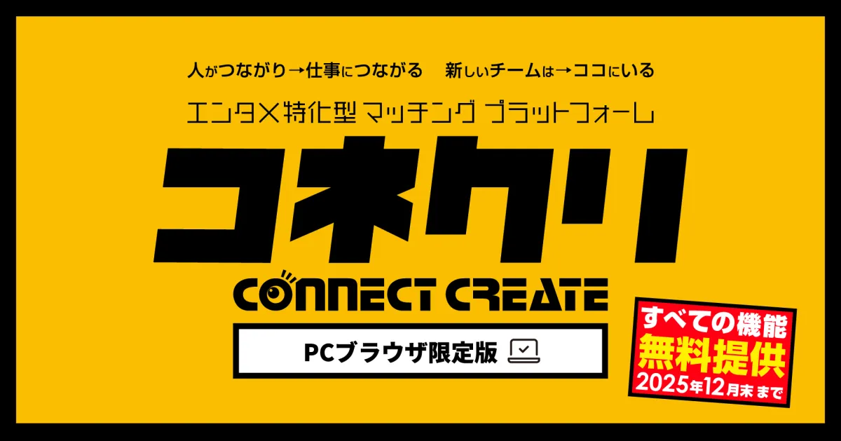 有限会社ワムハウス(本社:東京都世田谷区)は、2025年6月26日にエンターテイメント業界に特化したマッチングプラットフォーム「コネクリ」を開始します。このプラットフォームは、業界のあらゆるニーズに応えることを目的としており、主催者、制作スタッフ、クリエイターなど、エンタメ分野の多様なプロフェッショナルが互いに出会い、協力できる場を提供します。