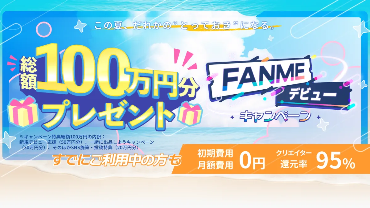 株式会社TORIHADAが運営するクリエイターコンテンツ販売サービス「FANME」は、クリエイターの夢をより強力に支援するための新たなキャンペーンを発表しました。2025年7月1日より開始されるこの「FANMEデビューキャンペーン」では、新規でFANMEに参加するクリエイターに対して、売上の95%を還元するという画期的な支援を行います。さらに、総額100万円を超える豪華プレゼントも用意されています。
