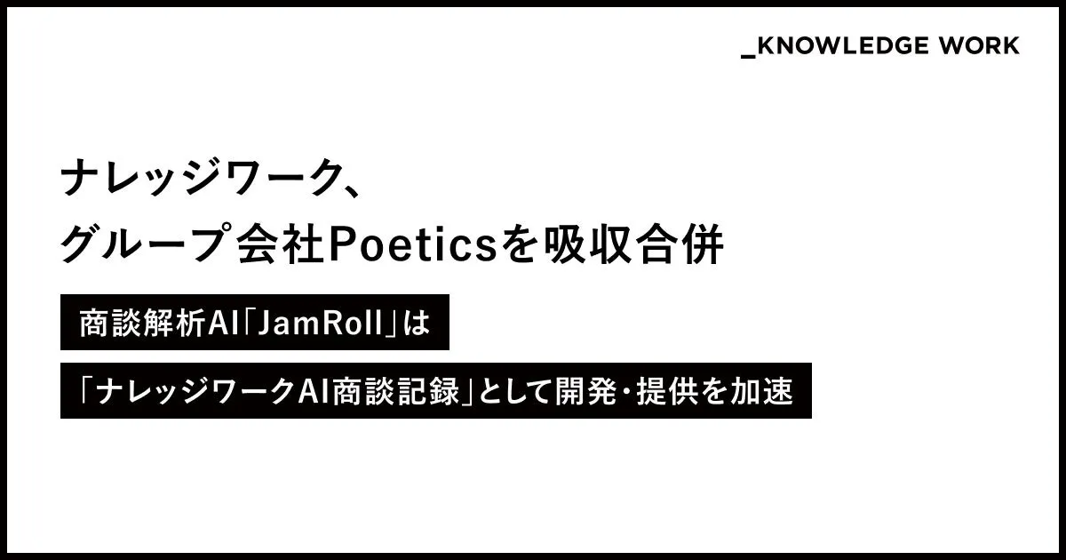 株式会社ナレッジワーク(東京都港区、CEO 麻野耕司)は、グループ企業である株式会社Poeticsを2025年6月30日付で吸収合併することを発表しました。この合併により、両社の強みを最大限に生かした新しい営業支援システムの開発が期待されています。