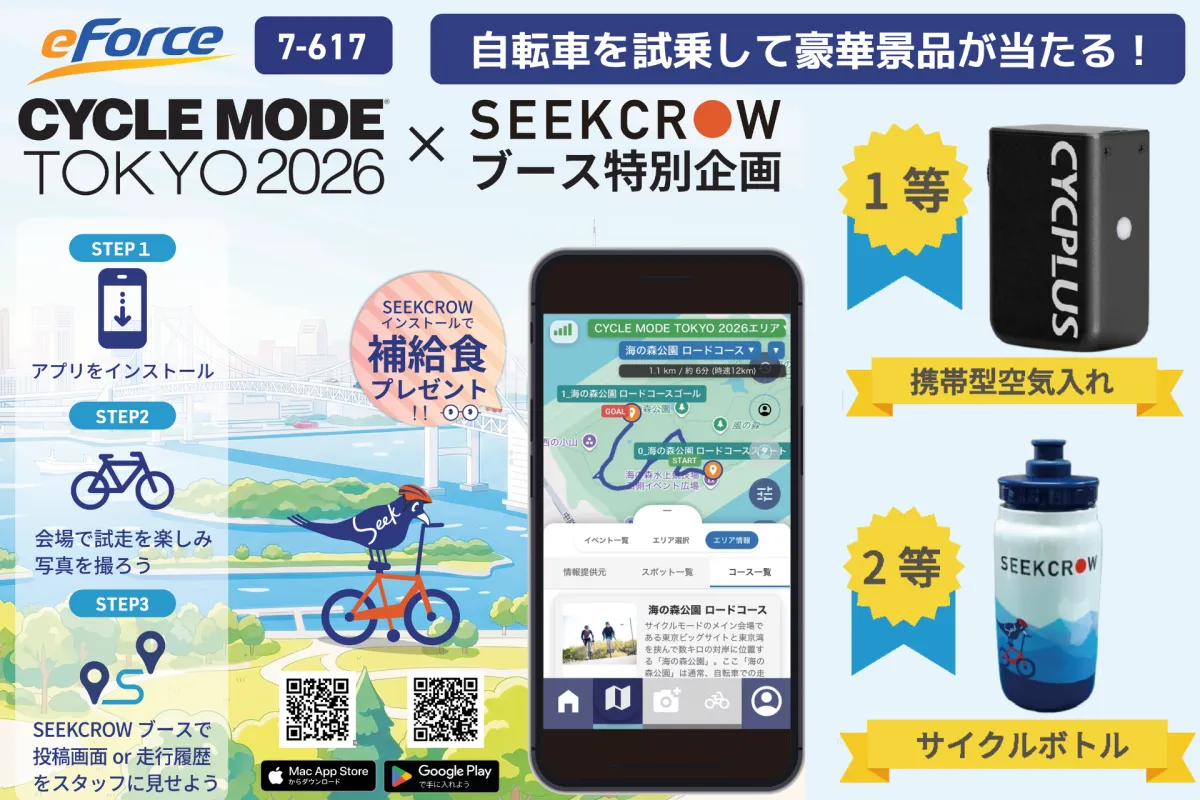 イー・フォース株式会社が、2026年4月に開催される日本最大級の自転車フェス「CYCLE MODE TOKYO 2026」に初出展します。このイベントでは、最新のアプリ「SEEKCROW」を導入した新しい体験型キャンペーンを行い、来場者にサイクリングの魅力を伝えます。