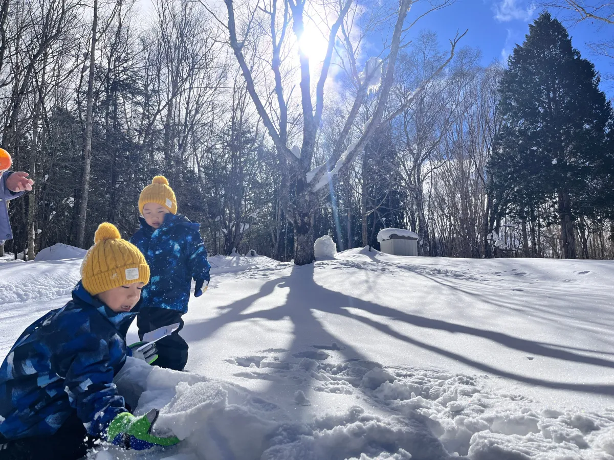 2日目には、参加者たちは森を散策しながら、動物の足跡や雪の結晶を観察しました。普段触れることのない冬の自然に対し、子どもたちは興味津々の様子。さらに、アイスクリーム作りも体験しました。遊びながら材料をコロコロと転がして、見事に美味しいアイスクリームが完成し、笑顔が溢れました。