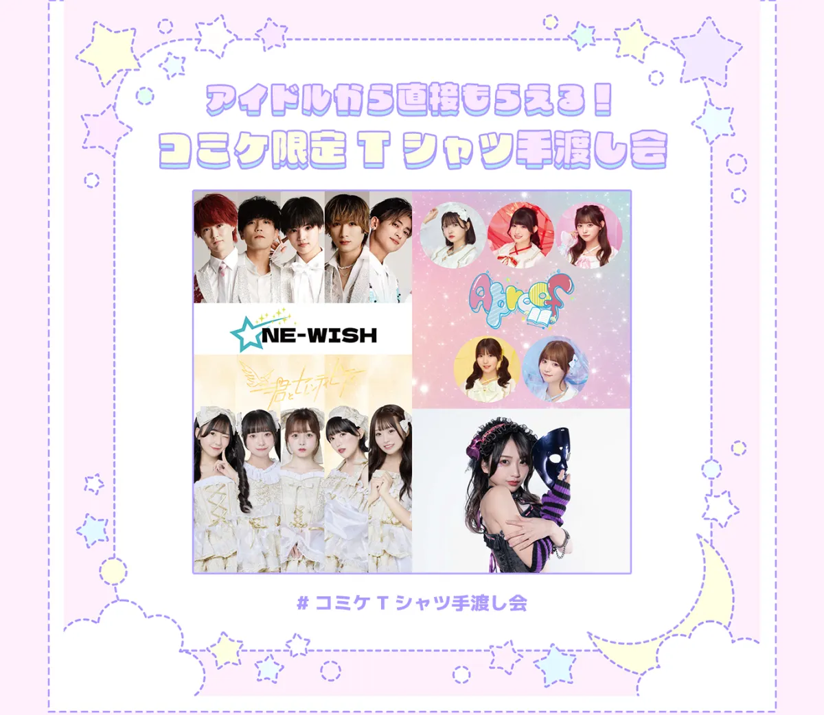 特設サイトはこちら)をチェックして、アイドルたちとの特別なひとときを楽しみにしていてください。コミケの熱気とともに、推しのアイドルとの素晴らしい時間が待っています!