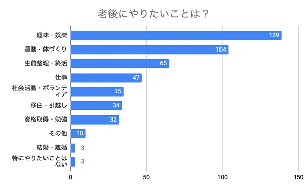 多くの回答者が趣味や娯楽を重視しています。趣味として英語の勉強をしたいという声や、投資による利益を求める意欲、家庭菜園で自給自足を楽しみたいという声が寄せられました。仕事や子育ての合間に趣味を楽しむことへの期待感が見えます。