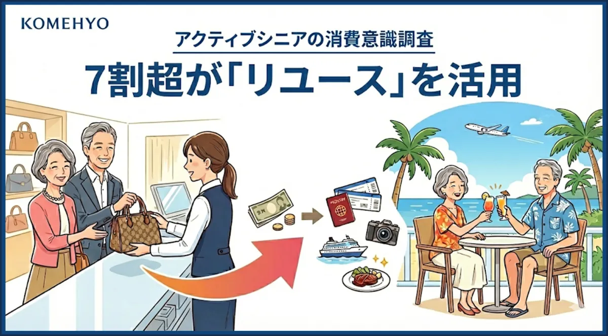 株式会社コメ兵(以下、KOMEHYO)は、全国の65歳以上のアクティブシニア554名を対象に実施した消費行動に関する調査を発表しました。この調査結果によると、65歳以上のアクティブシニアのうち71.3%がリユースサービスを利用していることが判明しました。また、不要なモノを売却し得られた資金を、旅行や美食といった体験へ再投資する意欲が示されています。これにより、今後のシニア層における消費トレンドの変化が注目されます。