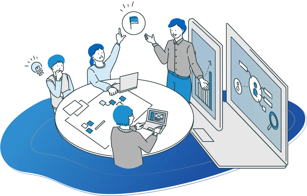 具体的には、戦術策定から施策運用に至るまで一貫してサポートし、ダッシュボード作成や会議の設計など、基盤作りから始めます。社内マーケターの能力を引き上げる教育サポートも行い、内製化を進めることで、依存からの脱却を狙います。