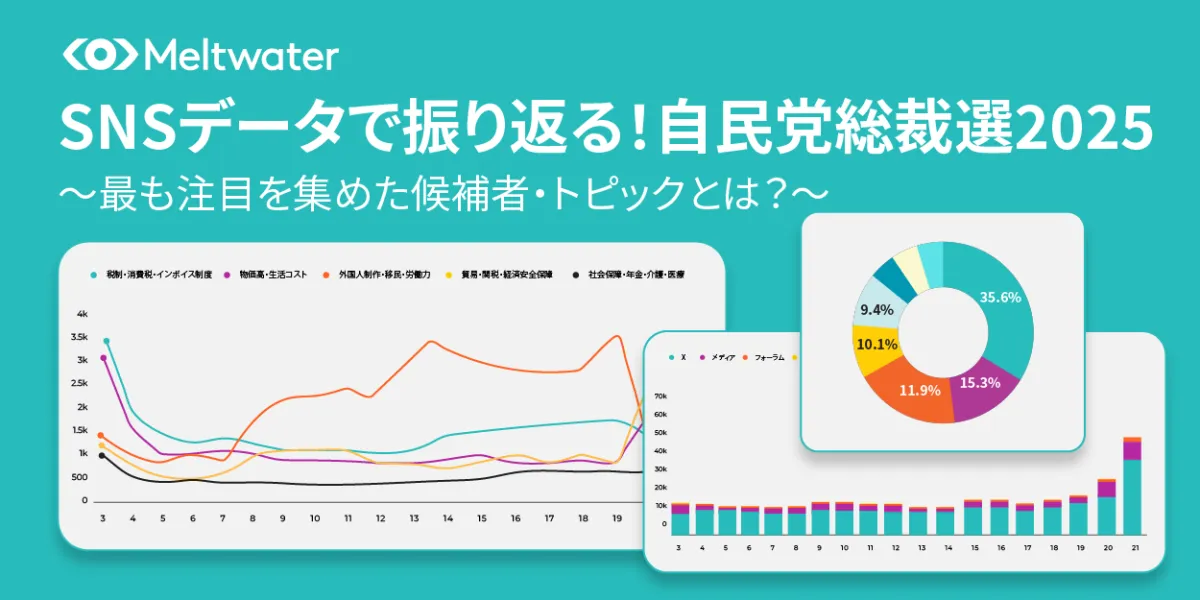 Meltwater Japan株式会社は、2025年10月に行われる自民党総裁選に関するSNSのデータを元にインタラクティブ・ダッシュボード「SNSデータで振り返る!自民党総裁選2025」を提供開始しました。このダッシュボードでは、SNS上における候補者や政策に対する反応をリアルタイムで可視化し、選挙に関する幅広い情報を素早く把握することができます。