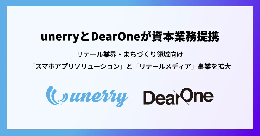 株式会社unerry(東京都港区)と株式会社DearOne(同じく東京都港区)が資本業務提携を締結しました。この提携は、両者が行うリテール業界やまちづくり領域に向けた「スマホアプリソリューション事業」と「リテールメディア事業」の拡大を目指しています。