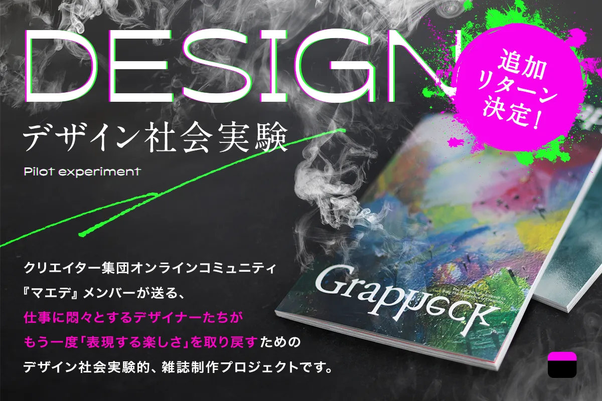 クリエイター集団・マエデが手掛ける雑誌『Grapheck』が、CAMPFIREでのクラウドファンディングで新たなリターンを追加しました。このプロジェクトは、日常のストレスを抱えるクリエイターたちに向けて、「表現する楽しさ」を届けることを目的としています。
