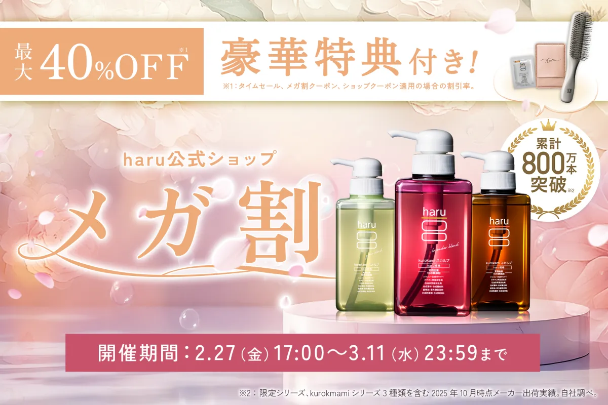 株式会社nijitoが展開するヘッドビューティブランド「haru」は、2026年2月27日からスタートするQoo10の「メガ割」イベントに参加します。この期間、haruの公式Qoo10ショップでは、特別価格で製品を手に入れるチャンスを提供し、春にぴったりの育毛習慣セットなど、魅力的なアイテムを揃えます。商品は、17:00から始まり、3月11日23:59までの期間中、最大で40%オフの特別価格で購入可能です。