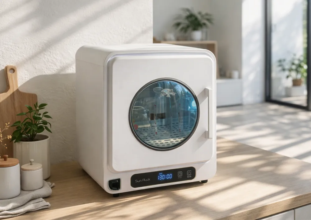 こうした従来の方法に代わって、「Baby Bottle Dryer」は水を使わない新しいアプローチを取ります。UV-Cライトと約70℃の熱風、さらにはマイナスイオンを組み合わせた「3つの方式」により、哺乳びんの除菌から乾燥までを一度の操作で完了させます。たったのボタン一つで、毎日の煩わしい手間を省くことができるのです。