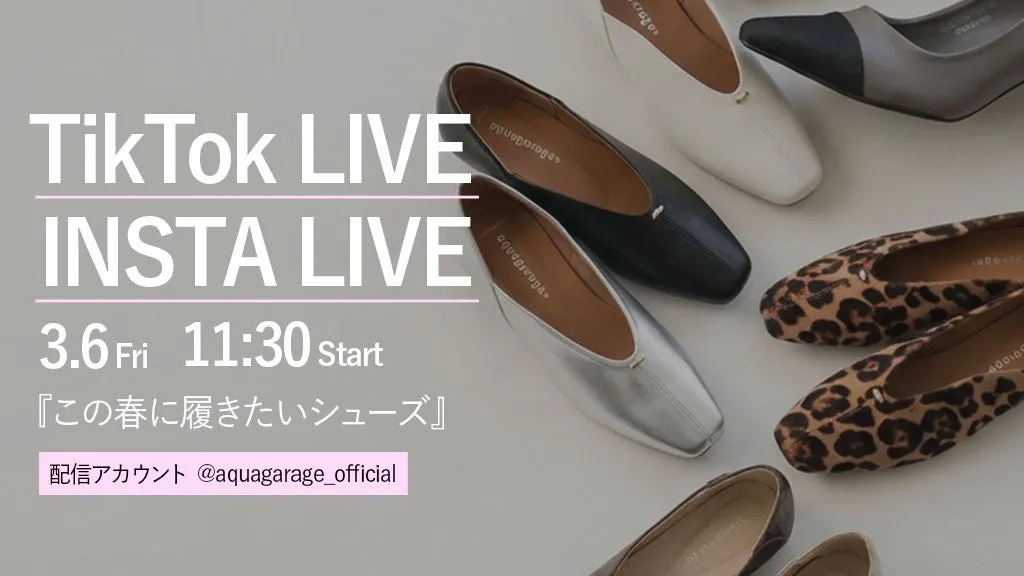 新作アイテムに関する特別な情報をお届けするため、TikTokおよびInstagramにて「春に履きたいシューズをご紹介!40代・50代女性のための『「ラク」と「美脚」を叶える人気シューズ』発売記念ライブ」を開催します。
