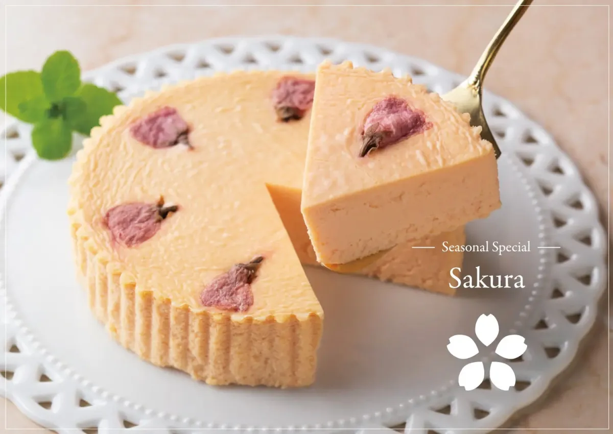 この「チーズケーキ さくら」は、アクセントとして桜の塩漬けが添えられており、しっとりとした食感の中に桜の芳香が広がります。それを実現するために、オーストラリア産のクリームチーズと国産のサワークリームを贅沢に使用し、低温でじっくりと焼き上げることで、濃厚な旨みと滑らかな口当たりが生まれています。