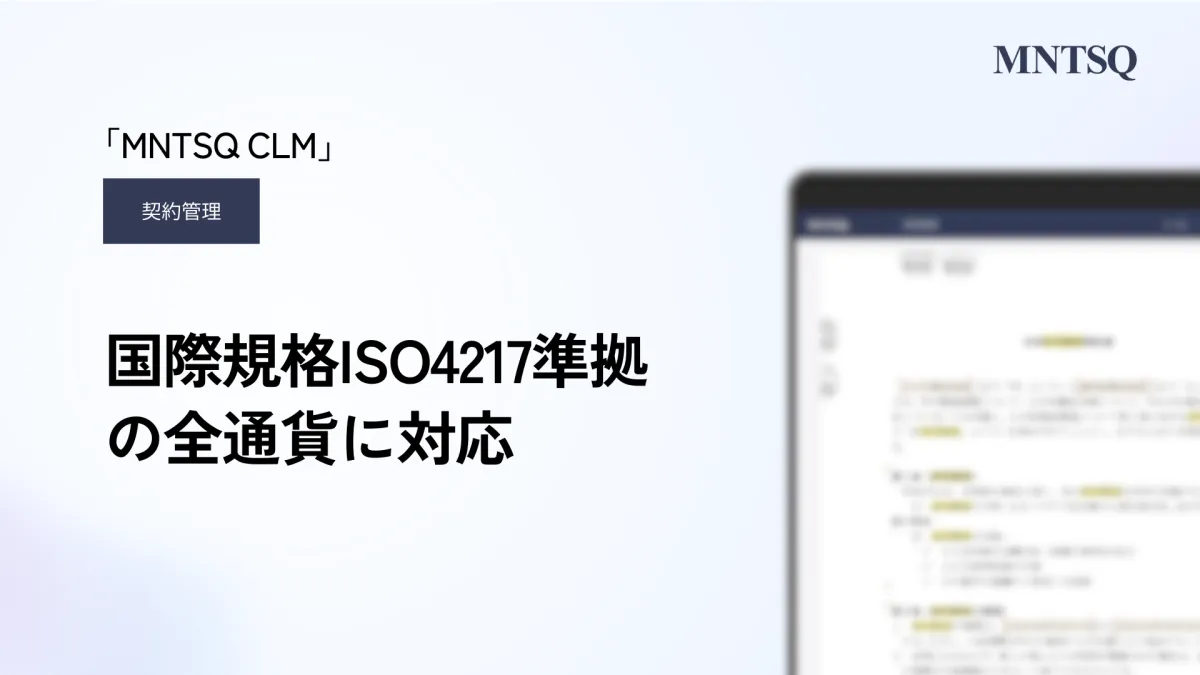 MNTSQ(モンテスキュー)株式会社は、契約管理ソリューション「MNTSQ 契約管理」の新たな機能を発表しました。国際基準であるISO4217に準拠した全通貨に対応することにより、グローバルな契約業務をさらに強力にサポートできるようになりました。