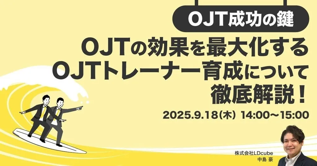 株式会社LDcubeは、9月18日14:00から15:00まで、「OJTの効果を最大化するOJTトレーナー育成について徹底解説!」というテーマのウェビナーを開催します。このウェビナーでは、特にOJTトレーナーの育成に焦点を当て、具体的な実施方法とその背後にある課題を掘り下げていきます。