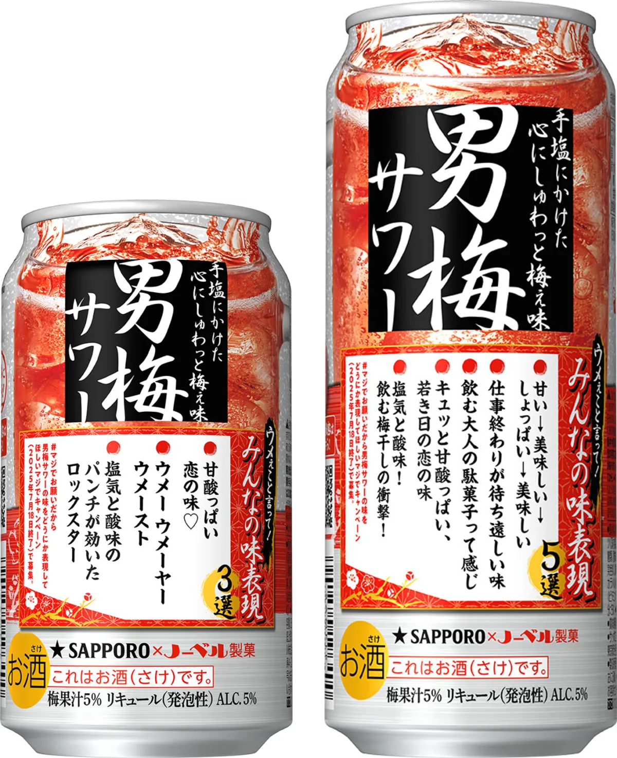 2025年11月から出荷される限定デザイン缶は、サッポロビールが繰り広げた「#マジでお願いだから男梅サワーの味をどうにか表現してほしいマジで」キャンペーンの結果を反映しています。このキャンペーンでは、ファンからの味の表現が募られ、選ばれた8つの言葉が缶の裏面に配置されました。350ml缶には3つ、500ml缶には5つの言葉が載せられ、ファンの創造力が形になっています。味わいだけでなく、デザインにもファンの意見が取り入れられるという新しい試みが、お酒の楽しみ方を広げているのです。
