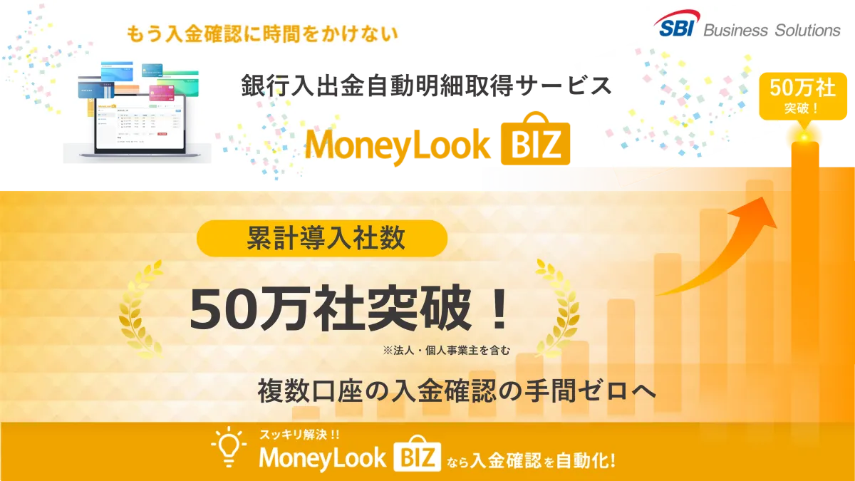 SBIビジネス・ソリューションズ株式会社が提供する銀行入出金明細自動取得サービス「MoneyLook BIZ」ですが、ついに累計導入社数が50万社を超えました。このサービスの普及により、多くの企業は日々の財務管理の負担を大幅に軽減しています。この記事では、MoneyLook BIZの魅力や導入の背景について解説します。