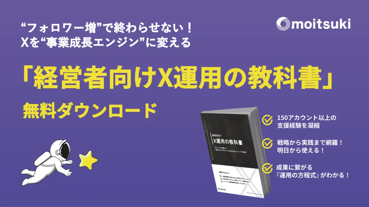 『経営者向けX運用の教科書』は無料でダウンロード可能です。公式URL(https://omoitsuki.co.jp/doc-dl/)から申し込みを行うことで、必要な情報を得ることができます。これにより、一歩前進し、経営の課題解決に向けた実践的な内容に触れることができるでしょう。