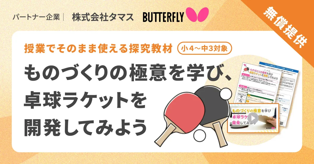 このプログラムは、映像教材を使い「バタフライ」の卓球ラケットの開発過程を詳しく掘り下げた後、児童たちが「よくはね返し、打ちやすいラケット」を企画するという実践的な活動が含まれています。これにより、チームでの協力やコミュニケーション力を高めながら、探究的な学びを体験することができます。