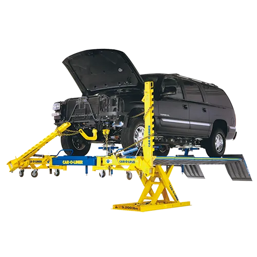 このベンチラックは、軽自動車から大型乗用車、小型トラックまで対応可能なマルチステージ型です。事故車の大小様々な修正作業を行うことができ、最新技術で開発された油圧ラムを搭載しています。これにより、高張力鋼材のフレーム修正もスムーズに実施可能です。