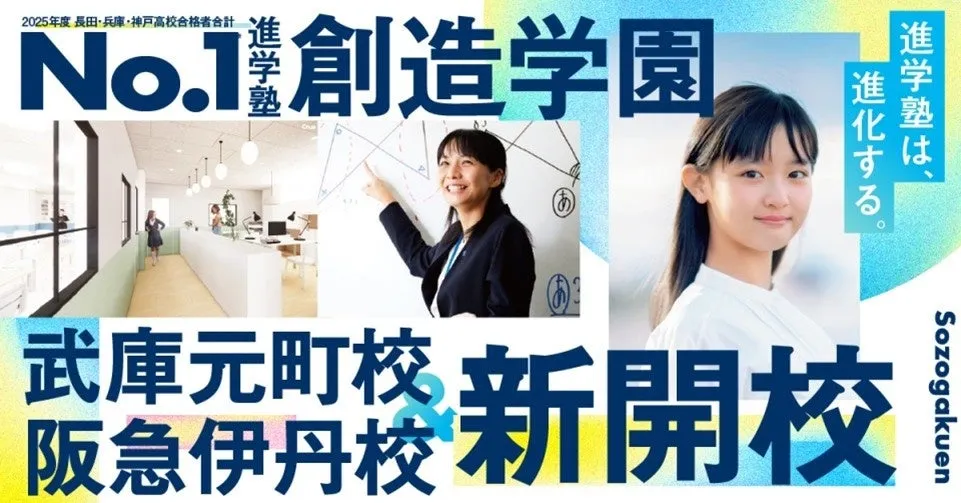 株式会社学研ホールディングスのグループ会社である創造学園が、兵庫県の尼崎市と伊丹市に新教室「武庫元町校」と「阪急伊丹校」を設立します。2025年12月の開校を前に、年長から中学2年生向けの入塾希望者を対象とした説明会が開催されます。