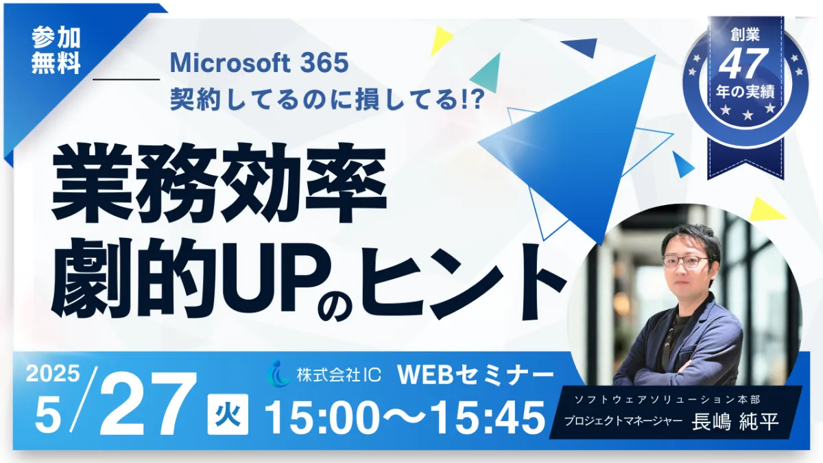株式会社ICは、2025年5月27日(火)15時からオンラインセミナーを実施します。このセミナーでは、Microsoft365の利用者向けに、業務効率化を実現するための「Power Platform」の活用方法を詳しく紹介します。