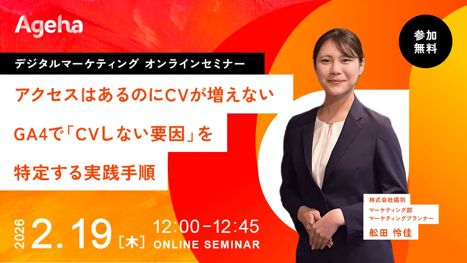 近年、企業がウェブサイトへのアクセス増加に力を入れている中、実はその増加が肝心の「問い合わせ」や「資料請求」を実現していないという問題が散見されます。株式会社揚羽(東京都中央区)が主催するオンラインセミナーでは、2026年2月19日に「アクセスはあるのにCVが増えない、GA4で『CVしない要因』を特定する実践手順」というテーマで開催されます。このセミナーでは、どのようにしてアクセスを成果に結びつけられるのか、その実践的な方法について学ぶことができます。
